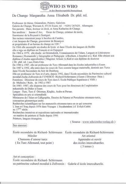 45136 Essen. Werrastr.8. Germany. tel: 0201/267629. e-Mail: margaretha.de-change@gmx.org